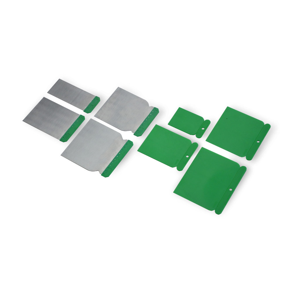 Szpachelki metalowe i plastikowe do rozprowadzania szpachli samochodowych. Komplet 4 sztuk o różnych szerokościach.